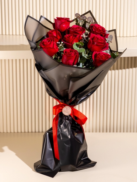 Kırmızı güllerin tutkusu, ve okaliptus dallarının doğal zarafetiyle hazırlanan bu şık buket, sevdiklerinizi mutlu etmenin en özel yolu. Düğün, yıldönümü veya doğum günü gibi özel anlar için ideal bir tercih.